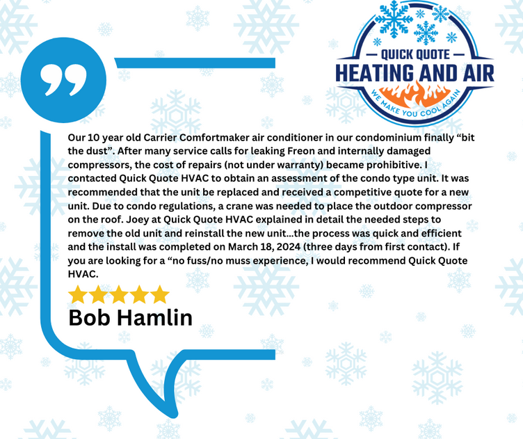 With over 20 years of experience, Quick Quote Heating and Air was built with trustworthiness as our cornerstone. We understand the importance of a reliable HVAC system, whether it's keeping your home comfortable year-round or ensuring your business operates smoothly. That's why we stand firmly behind our repairs and installations, guaranteeing quality workmanship and lasting results.